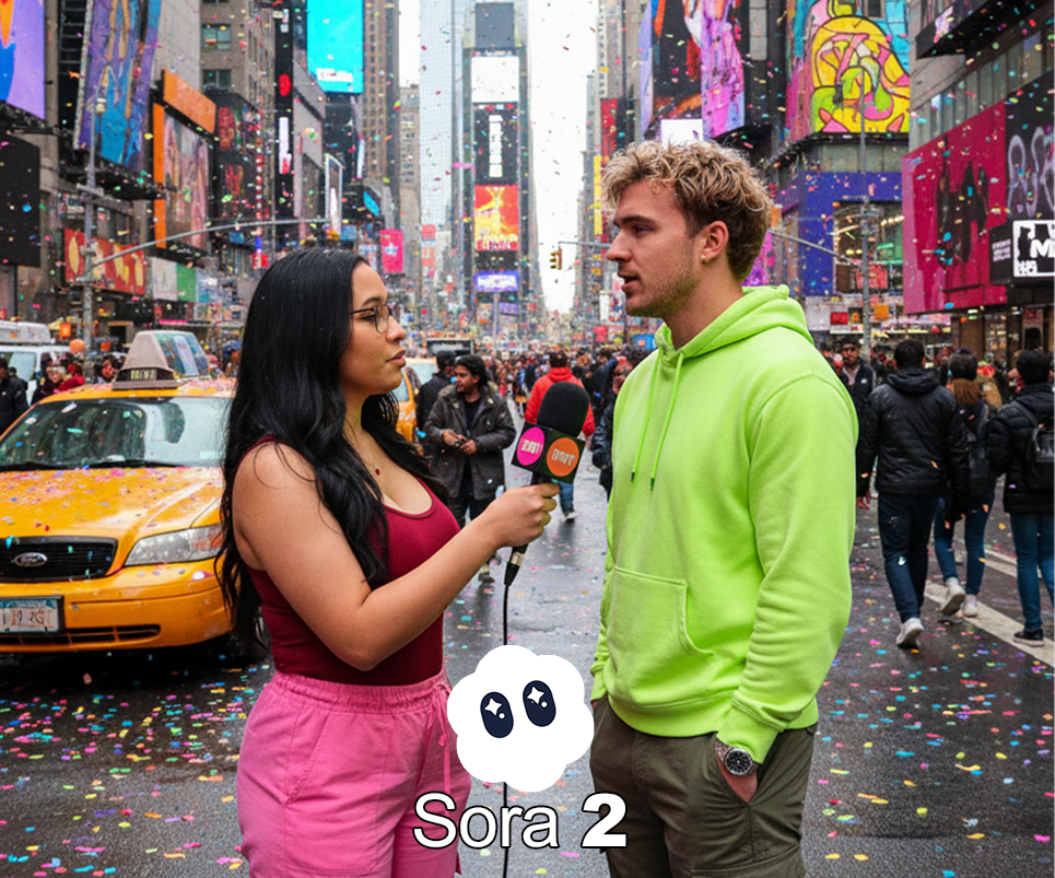 Sora 2 no solo genera clips, también voces y diálogos. Estas escenas son perfectas para quienes quieren crear contenido tipo sketch o programa de humor.