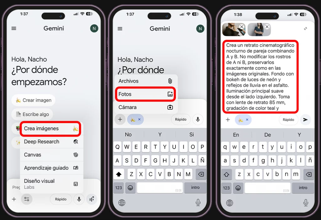 - Cómo crear fotos de pareja con Gemini