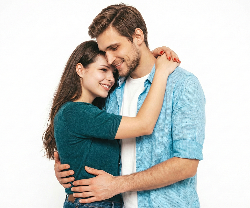 Prompt para fotos de pareja Gemini – Retrato de estudio con fondo blanco puro