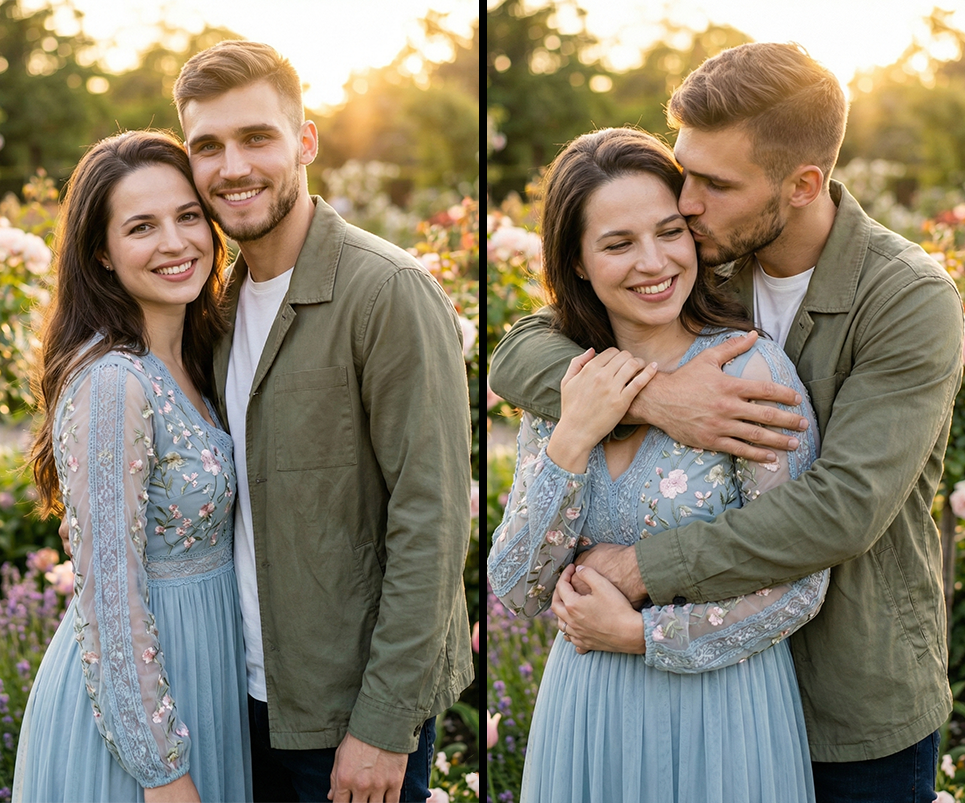 Prompt para fotos de pareja Gemini – Romántica en jardín