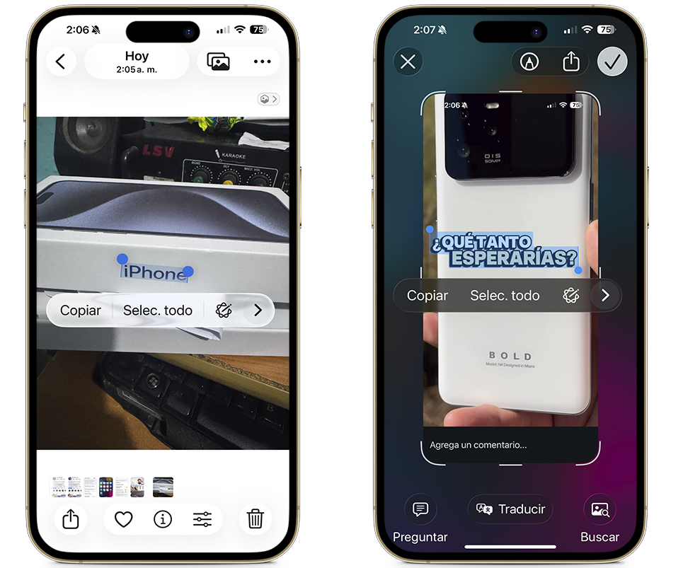 Esta función me sorprendió muchísimo. Haces una foto o una captura de pantalla, mantienes pulsado sobre el texto y, en segundos, puedes copiarlo directamente. Es algo tan simple pero tan útil que, sinceramente, no entiendo cómo he vivido sin ello.