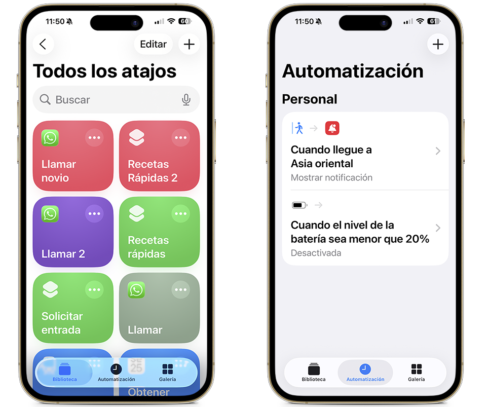 Otra de las cosas que me gustan de mi iPhone son los atajos. De verdad, son lo máximo. Me encanta cómo simplifican tareas que antes me llevaban varios pasos. Con un toque puedes abrir apps, enviar mensajes o activar funciones sin perder tiempo.