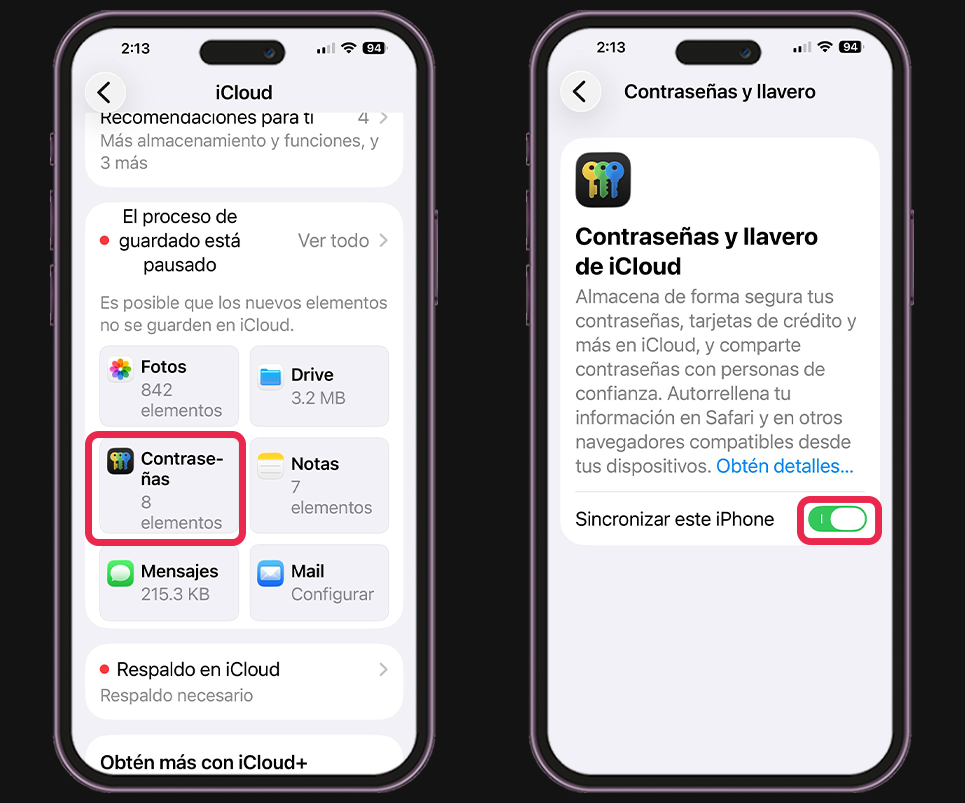 - Contraseñas de iCloud.