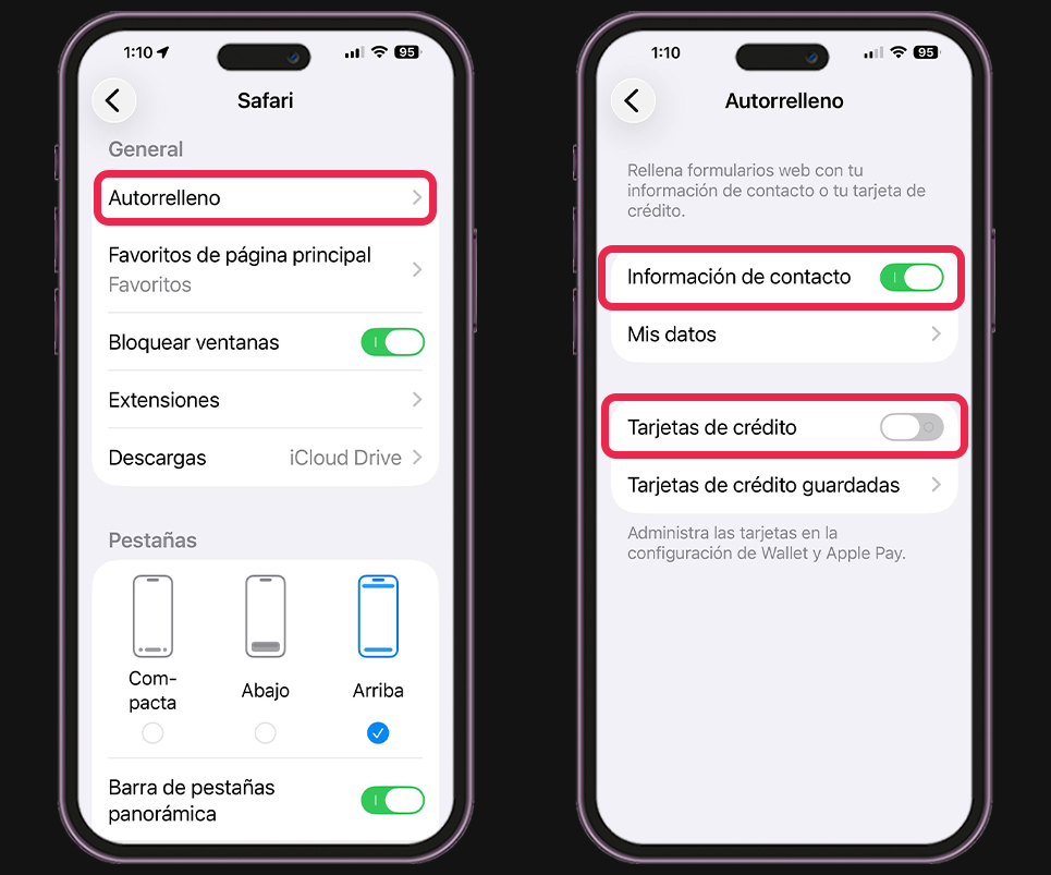 Si alguna de estas opciones está apagada, el iPhone no completará esos datos automáticamente.