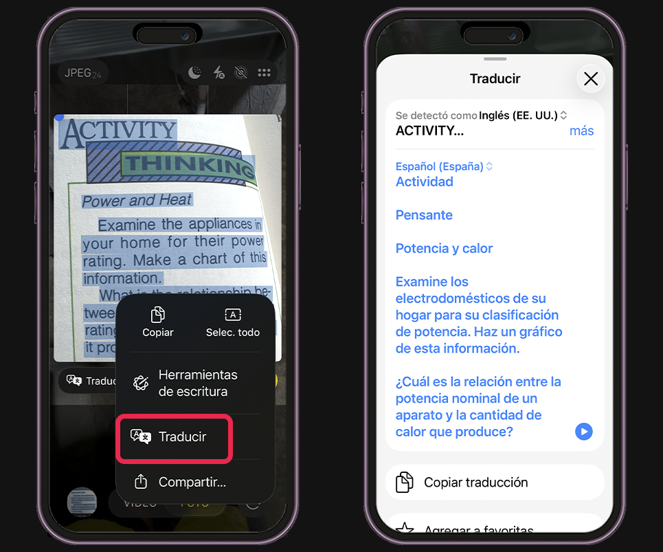 - Cómo traducir un menú o cartel con la cámara (Live Text)