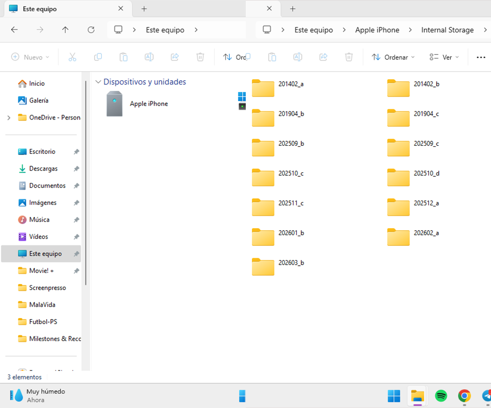 📌 Consejo rápido. Si tu iPhone no aparece en el Explorador de archivos, asegúrate de desbloquear el teléfono antes de conectarlo. También puede ayudar cambiar de puerto USB o usar el cable original de Apple, ya que algunos cables solo sirven para cargar.